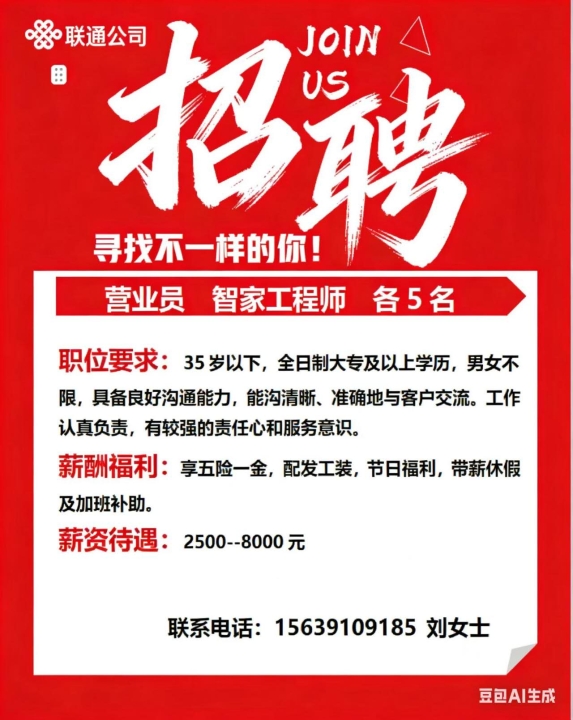 招聘岗位:营业员 智家工程各5名...